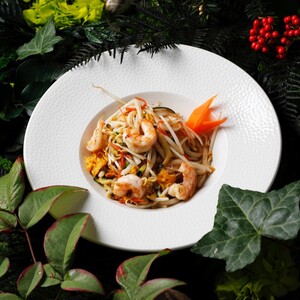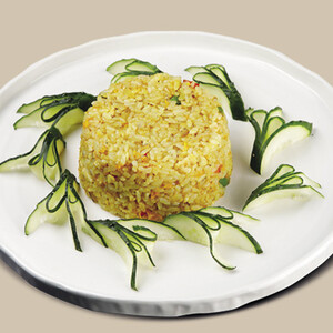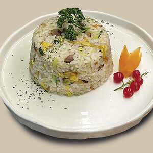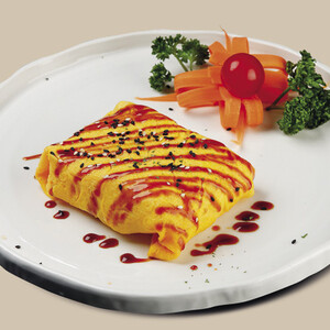 riso avvolto in omelette, salsa teriyaki, sesamo.